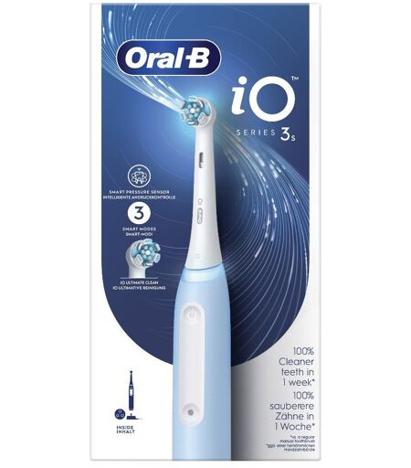 Procter & Gamble Srl Oral-B iO 3S Spazzolino Elettrico Ricaricabile Blu – Spazzolino Elettrico con Sensore di Pressione, 3 Modalità di Pulizia, 1 Pezzo