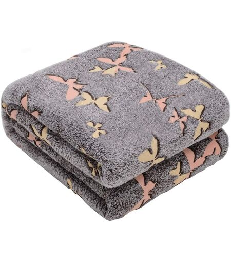 BAKAJI Kanguru, Plaid Pile, Grigio, Glow, singolo, si illumina al buio, Coperta divano microfibra, morbida divertente, Farfalle 130x150cm, Simpatico