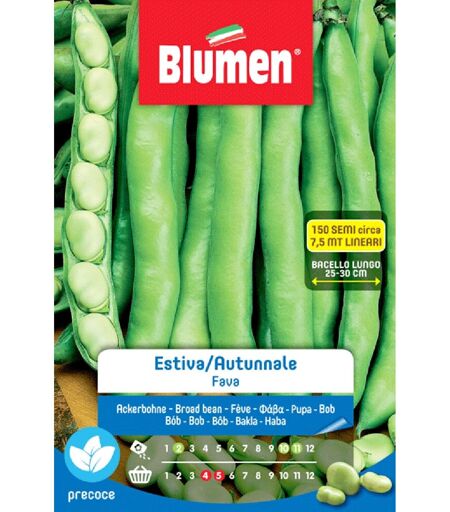 Il baccello della fava a maturazione precoce è lungo 25 - 30 cm, dritto, di colore verde glauco. Ideale per la surgelazione, contiene 5 - 6 semi ravvicinati, di media grandezza, appiattiti, di colore verde grigio. Si consiglia una semina tra settembre e novembre ed un`esposizione soleggiata. ...