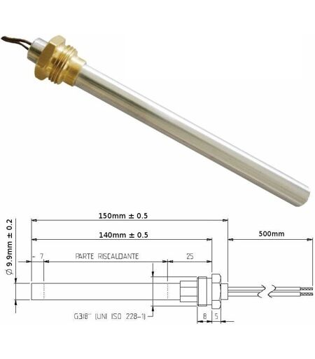 Resistenza Candeletta Stufe a pellet 3/8 300W 150mm Ungaro 140mm battuta ...