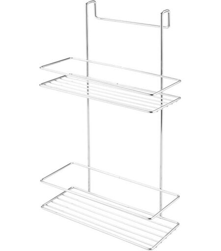 Portaoggetti Rettangolare Pratiko 2 Ripiani Acciaio Cromato Con Gancio 25,5x40x13cm (lxhxp) ...