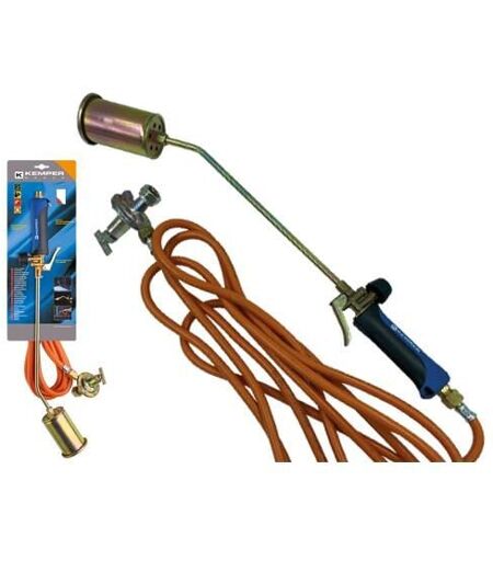 Cannelli Kemper con leva bruciatori in kit Cannello per asfaltista, rubinetto in ottone con leva economizzatrice, prolunga 35 cm., cavalletto di sostegno, bruciatore Ø 60 mm., 5 metri di tubo, regolatore di pressione regolabile 0-3 bar ...