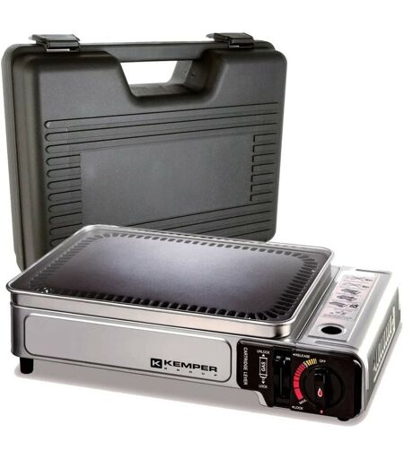 Piastra portatile a gas Kemper 2300 W Piastra antiaderente 34 × 25 cm Funziona con cartucce gas da campeggio Design compatto con custodia da trasporto Regolazione della fiamma integrata ...