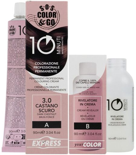 Alama Sos Color&go Set Colorazione Professionale Permanente In 10 Minuti - 90 Ml 3.0 Castano Scuro
