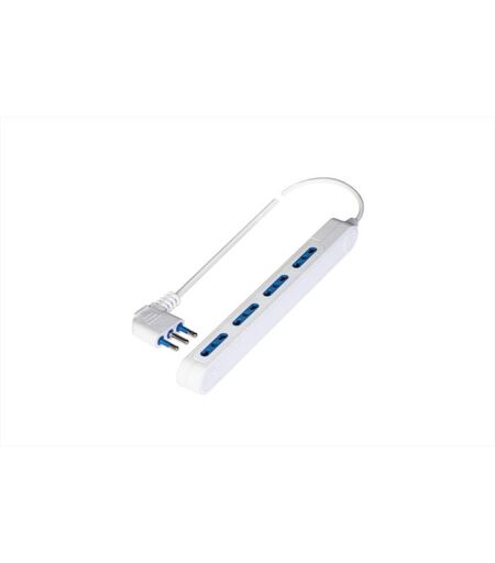 Prese multiple SPAZIOZERO 250V~ con cavo e spina "Salvaspazio" - Presa multipla "SPAZIOZERO" 250V~ con 4 prese 10/16A 2P+T, 1,5 m cavo H05VV-F 3X1 mmq, spina "salvaspazio" 16A 2P+T con uscita a 90°. Colore: bianco. Grazie all'ingombro di solo 23 mm, l'utilizzo di questa multipresa è consigliato in spazi molto ristretti (dietro a mobili, divani, ecc.). ...