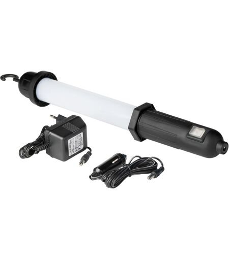 Lampada portatile da lavoro senza fili con 12 LED (SMD) 110 lm ricaricabile. Dotata di 3 batterie AA 3,6V 600 mAH ricaricabili. Durata batterie: 2 ore circa continuative. Tempo di ricarica: 4-5 ore circa. Provvista di alimentatore AC/DC 6V 300 mA e alimentatore da auto 12-24V. Con pratico manico antiscivolo e interruttore ON/OFF è leggera e maneggevole ed è possibile appenderla tramite il comodo gancio orientabile a 360° che rende il suo utilizzo ideale per tutte le attività che necessitano di avere le mani libere in casa, garage, officina, campeggio ecc. ...