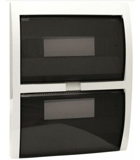 Coperchio IP40 colore bianco domus RAL9010 36 moduli DIN per scatole 53S36 e 53S36CG Coperchio IP40 con portello fumé – colore bianco Domus RAL9010 per scatola 53S36 e 53S36CG – 36 moduli DIN – Dimensioni (L H P): 388 x 369 x 30,5 mm ...