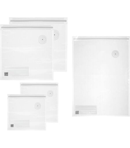 Guzzini Save-it Set 5 Sacchetti per Sottovuoto Riutilizzabili, 2 Misura m 21x22, 2 Misura l 30x34, 1 Misura xl 45x32 - Trasparente - 12340252 -