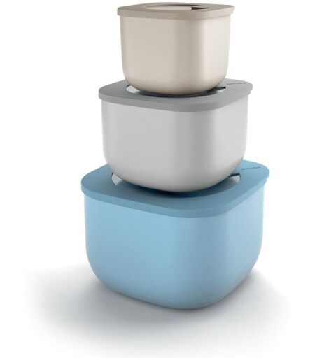 Guzzini - Store&More Kitchen Active Design Set 3 Contenitori Alti Ermetici per Frigo/Freezer/Forno a Microonde, 19.5 x 19.5 x 12.3 cm, Multicolore