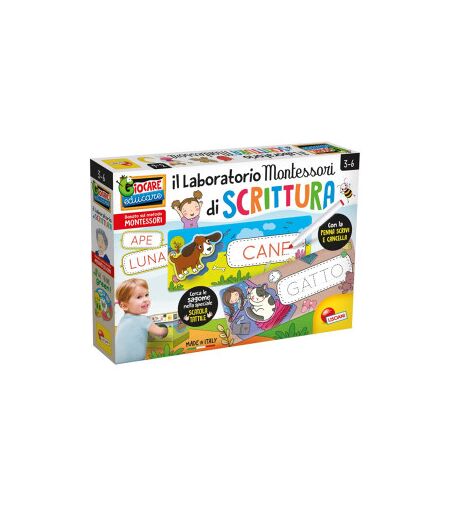 Il Montessori Maxi Laboratorio di Scrittura di Lisciani e' un gioco educativo ispirato al metodo Montessori, progettato per bambini dai 3 ai 6 anni, che favorisce l'apprendimento della scrittura in modo coinvolgente e sensoriale. Grazie a una serie di strumenti e attivita', il bambino puo' sviluppare le sue abilita' di scrittura e manualita', imparando attraverso l'esplorazione e la ripetizione. Una scatola sensoriale che permette ai bambini di cercare e riconoscere gli oggetti al suo interno usando solo il tatto, aiutando a sviluppare la percezione sensoriale. Contiene parole guida per aiutare i bambini ad associare oggetti con parole corrispondenti, facilitando l'apprendimento della scrittura. Oggetti e parole in forma sagomata, da manipolare e posizionare sulle cartelle, per imparare a comporre parole e frasi. Consente ai bambini di esercitarsi ripetutamente nella scrittura, scrivendo e cancellando facilmente le parole. Cancellino incluso per cancellare in modo semplice le scritte e riutilizzare le cartelle. Un gioco educativo perfetto per introdurre i bambini alla scrittura, rendendo l'apprendimento divertente e stimolante. ...