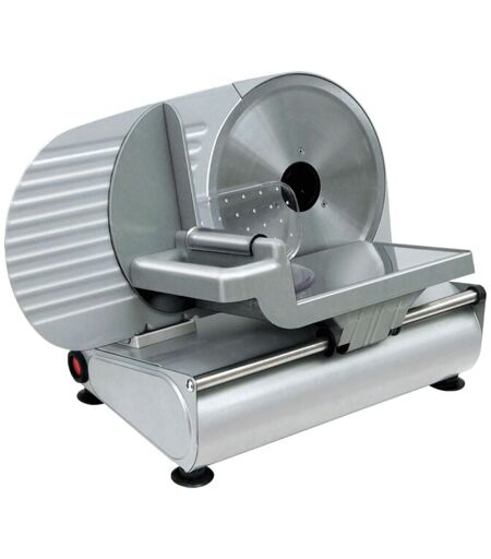 AFFETATRICE AUSONIA 220 Affettatrice concepita per uso domestico. È composta da una base in acciaio e alluminio fuso laccato. La lama, in acciaio temprato e movimentata con trasmissione a cinghia, è facilmente pulibile grazie a un sistema brevettato che consente di smontarla agevolmente. Caratteristiche tecniche: ...