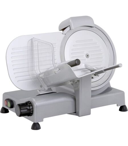 Affettatrice di media dimensione ideale per affettare salumi, carni, formaggi e pane. La sua linea consente una perfetta pulizia dopo l'utilizzo, questo grazie alla totale assenza di zone dove lo sporco si possa annidare. Progettata seguendo le norme di sicurezza vigenti questa affettatrice presenta le seguenti caratteristiche: basamento in alluminio laccato con vernici alimentari coprilama, piatto merci, paratia di regolazione fetta in alluminio con ossidazione anodica lucida, cosi' da ottenere un prodotto igienicamente pulito e anticorrosivo motore di tipo professionale ventilato per limitare il riscaldamento e renderlo silenzioso albero portalama montato su doppio cuscinetto che rende l'affettatrice silenziosa lama professionale temprata, rettificata e cromata al cromo duro per mantenere il piu' a lungo l'efficienza nel taglio affilatoio fisso con doppio smeriglio per affilare ed eliminare la bava; la copertura dell'affilatoio e l'anello di protezione lama possono essere in ...
