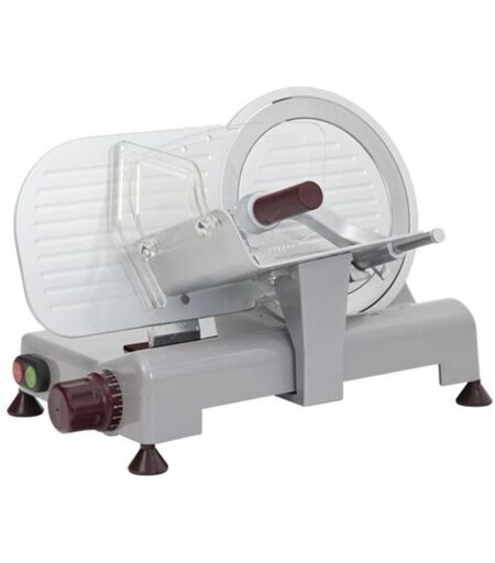 RGV Luxury Italia 22 GL-R. Tipo di affettatrice: Elettrico, Spessore di taglio (max): 1,6 cm, Colore del prodotto: Grigio. Potenza: 140 W. Larghezza: 480 mm, Profondità: 345 mm, Altezza: 310 mm Affettatrice di minimo ingombro studiata per tagliare salumi, formaggi, frutta e verdura grazie alla lama di terza generazione di cui è dotata che permette una minore aderenza del prodotto sulla lama agevolandone il taglio. Il nuovo sistema EASY CLEAN, che permette di inclinare il piatto, consente una rapida e facile pulizia della zona di taglio. Il pressamerce con la ciabatta in tritan SMONTABILE e LAVABILE IN LAVASTOVIGLIE rende ancora più semplice la pulizia di questo modello di affettatrice.Affettatrice priva di spigoli studiata per una facile pulizia. La lama di terza generazione di cui è dotata permette una minore aderenza del prodotto sulla lama agevolando il taglio degli alimenti (salumi, formaggi, frutta e verdura). Presenta le seguenti caratteristiche:SISTEMA EASY CLEAN: piatto ...