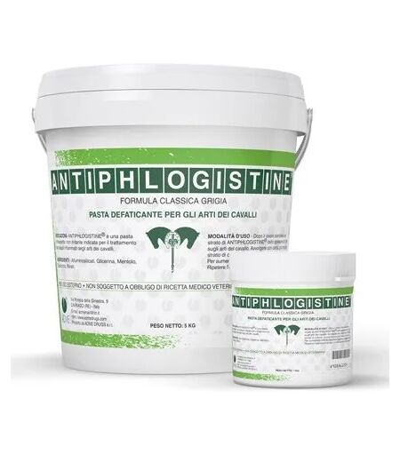 ANTIPHLOGISTINE - Descrizione Pasta dietetica per gli arti dei cavalli. Prodotto indicato come supporto della decongestione (anche in caso di edema) delle strutture legamentose e tendinee degli arti del cavallo. Modalità d'uso Prima di un lavoro gravoso, il prodotto può essere applicato sugli arti … ...