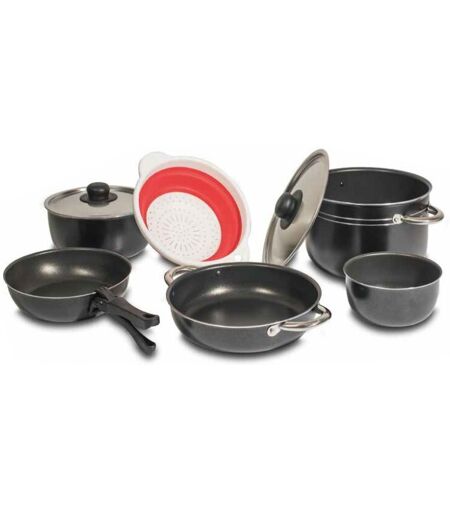 Pentole in alluminio Black 22 di Beaver Brand...l’ideale per la cucina fuori casa!! Batteria da 9 pezzi. Pentole in alluminio puro 99,5%. Rivestimento antiaderente per alimenti. ...