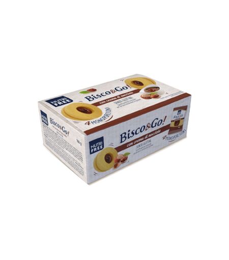 NUTRIFREE Bisco&Go con crema di nocciole - Descrizione Crema di riso e farina di mais con un cuore di crema di nocciole. Il Bisco&Go senza glutine con crema di nocciole è perfetto per una pausa gustosa dove e quando vuoi. Senza amido di frumento, senza OGM, senza grassi idrogenati. - Ingredienti Fa… ...