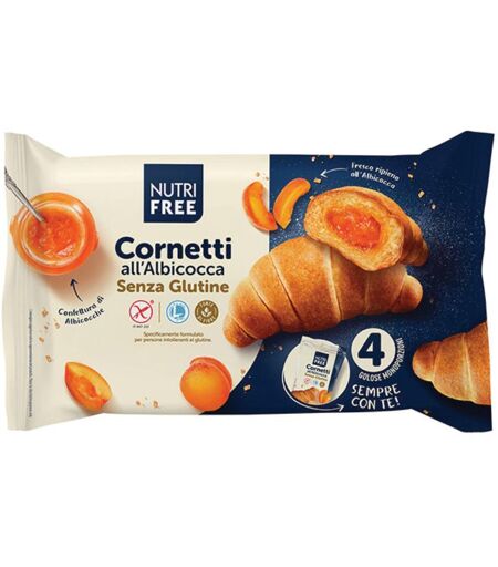 NUTRI FREE - Cornetti all'Albicocca - Descrizione Cornetti ripieni di farcitura all'albicocca. - Ingredienti Amido di mais, acqua, farcitura all’albicocca 18% (sciroppo di glucosio - fruttosio, purea di albicocche 35%, zucchero; addensanti: pectina, alginato di sodio, pirofosfato tetrasodico; corre… ...