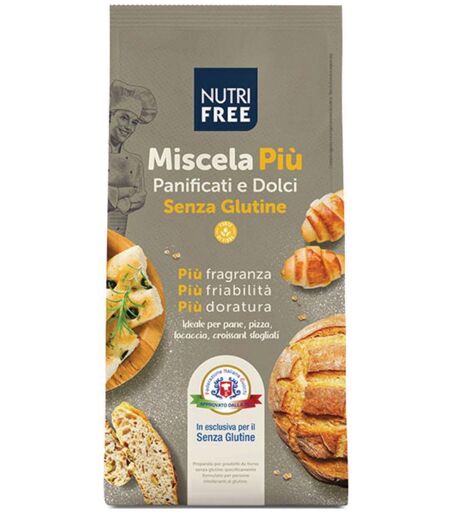NUTRI FREE - Miscela Più - Descrizione Miscela per panificati e dolci. - Ingredienti Amido di frumento deglutinato 40%, amido di mais, farina di riso, amido di tapioca, fibre di psyllium; addensanti: idrossi - propil - metilcellulosa, gomma di guar; estratto di lievito. - Può contenere tracce di so… ...