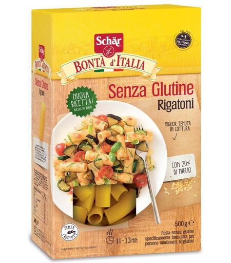 Schär I Classici R I G A T O N I - Pasta dietetica senza glutine. Ingredienti Farina di mais; farina di miglio; farina di riso; sciroppo di canna da zucchero. Può contenere tracce di soia. Caratteristiche nutrizionali per 100 g Valore energetico1537 kJ - 362 kcal Proteine8,3 g Carboidrati di cui zu… ...