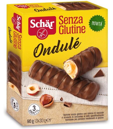 Ondulé Senza glutine. Una dolce combinazione di cioccolato, cialda e nocciola. Ingredienti Crema alla nocciola 57% [zucchero, oli vegetali (palma, girasole); nocciole 20%, lattosio (latte), siero di latte in polvere, latte intero in polvere, aroma naturale di vaniglia; emulsionante: lecitina di gir… ...