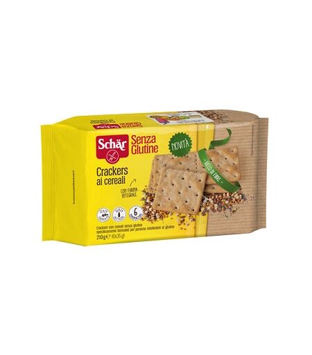 Schar Crackers Cereali Crackers con cereali senza glutine. Specificamente formulati per persone intolleranti al glutine. Ingredienti Amido di mais, margarina vegetale [grassi e oli vegetali in proporzione variabile (palma, palmisto, colza), acqua, sale; emulsionante: mono e digliceridi degli acidi grassi; aroma], maltodestrine, amido di tapioca modificato, farina di miglio integrale 6,5%, farina di soia, sciroppo di riso, farina di riso integrale 3,7%, farina di grano saraceno 1,9%, farina di sorgo 1,9%, farina di semi di lino 1,7%, farina di mais 1,5%, pasta madre essiccata (grano saraceno, quinoa), crusca di soia 1,5%, semi di papavero 0,7%, sciroppo di barbabietola, sale marino; emulsionante: esteri mono e diacetiltartarici di mono e digliceridi degli acidi grassi; agenti lievitanti: carbonato acido di ammonio, carbonato acido di sodio, tartrato monopotassico; addensanti: farina di guar, idrossipropilmetilcellulosa; acidificante: acido citrico; aroma naturale di rosmarino. Può ...