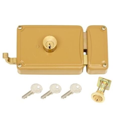 Serratura da applicare con cilindro esterno staccato, verniciata in nocciola con polvere epossidica. Dotata di scrocco e catenaccio a 3 mandate, doppio cilindro: interno fisso a 3 pistoncini e esterno a 5 pistoncini, di cui 2 antimanipolazione. Fornita con 3 chiavi in ottone nichelato, bocchetta, borchia e viti di fissaggio. Ideale per garantire sicurezza e protezione in vari ambiti di utilizzo. ...