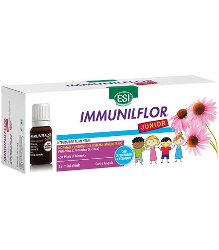 Esi Srl ESI Immuniflor Junior Integratore Sistema Immunitario Bambini, 12 Mini Drink Gusto Fragola