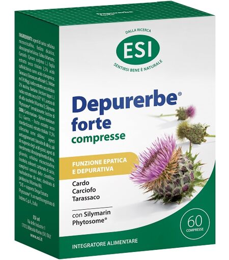 Depurerbe forte - Descrizione Integratore alimentare a base di Silymarin Phytosome (estratto standardizzato di cardo mariano con fosfolipidi) ed estratti vegetali di carciofo, tarassaco, bardana, con colina, inositolo e vitamina B6. Cardo mariano, carciofo e tarassaco sono utili per favorire la fun… ...