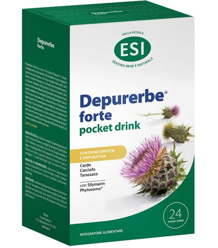 Depurerbe forte pocket drink - Descrizione Integratore alimentare a base di Silymarin Phytosome (estratto standardizzato di cardo mariano con fosfolipidi) ed estratti vegetali di carciofo, tarassaco, bardana, con colina, inositolo e vitamina B6. Cardo mariano, carciofo e tarassaco sono utili per fa… ...