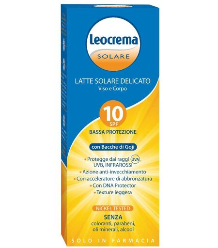 Leocrema - SOLARE - LATTE DELICATO - • Protegge dai raggi UVA, UVB, Infrarossi. • Azione anti - invecchiamento. • Con acceleratore di abbronzatura. • Con DNA Protector. • Texture leggera. Protezione Bassa: 10 SPF. - Formato 200 ml Cod.05853200 ...