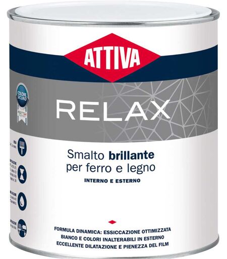 Attiva SMALTO SOLVENTE RELAX 0,75 l BRILLANTE BIANCO ICEBERG ALTO SOLIDO 12-13 m² CON1 l