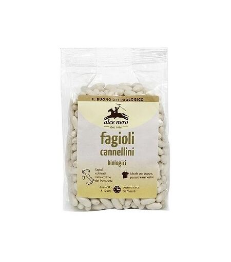 alce nero - fagioli cannellini biologici fagioli coltivati nelle colline del Piemonte ideale per zeppe passati e minestre ammollo 8 - 12 ore cottura circa 60 minuti Formato 400 g Cod.LS467 ...