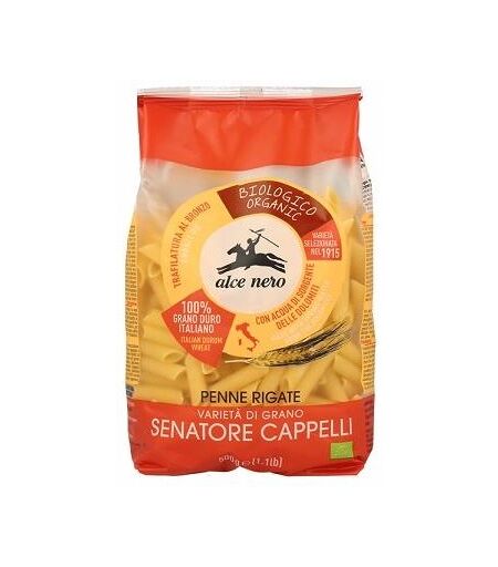alce nero Penne rigate di grano duro Senatore Cappelli biologiche Ingredienti Semola di grano duro*, acqua. *biologico Informazioni Nutrizionali per 100 g o ml Valore energetico Proteine Carboidrati di cui zuccheri Grassi di cui saturi Sale 1501 kJ/356 kcal 13 g 71 g 2,6 g 1,5 g 0,3 g 0 g Conservazione Conservare in luogo fresco ed asciutto, al riparo dai raggi solari. Formato 500 g Cod.PSC725 ...