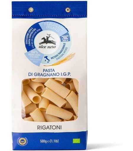 Rigatoni Di Gragnano Di Semola Di Grano Duro La lavorazione di questa pasta avviene con trafilatura ruvida al bronzo, cui segue una lenta essiccazione a basse temperature. I rigatoni di Gragnano Alce Nero, grazie alla loro forma, sono ideali per trattenere il condimento su tutta la superficie e conferire quindi un sapore avvolgente ad ogni ricetta. Ingredienti Semola di grano duro biologica. Contiene cereali contenenti glutine. Informazioni Nutrizionali per 100 g Valore energetico Proteine Carboidrati - di cui zuccheri Grassi - di cui acidi grassi saturi Sodio 1511 kJ/356 kcal 13 g 72 g 3,8 g 1,6 g 3 g 0,003 g (come sale: 0,005 g) Conservazione Il prodotto ha una validità di 36 mesi dalla data di ...