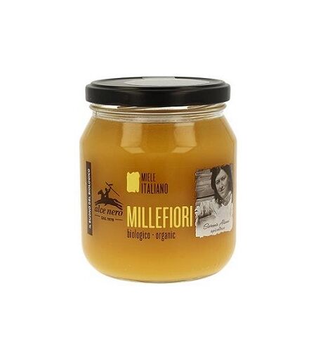 alce nero - MIELE ITALIANO - MILLEFIORI biologico - organic Valori Nutrizionaliper 100 g Valore energetico 331 kcal/1408 kJ Proteine 0 0 g Carboidrati 83 g di cui zuccheri 83 g Grassi 0 0 g di cui saturi 0 0 g Conservazione Conservare in luogo fresco ed asciutto al riparo dai raggi solari. Il prod… ...