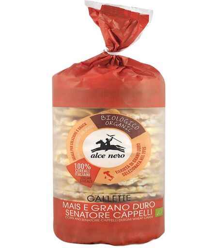 Alce Nero Gallette Di Mais E Grano Duro Cappelli 100 Grammi. Gallette Di Mais E Grano Duro Cappelli Sono Realizzate Aggiungendo Al Mais Il Grano Cappelli Coltivato In Italia Che Si Contraddistingue Per Il Profumo Intenso Il Sapore Deciso E Le Spighe Alte Fino A Un Metro E Ottanta Che Terminano Con Inconfondibili Baffi Neri. ...