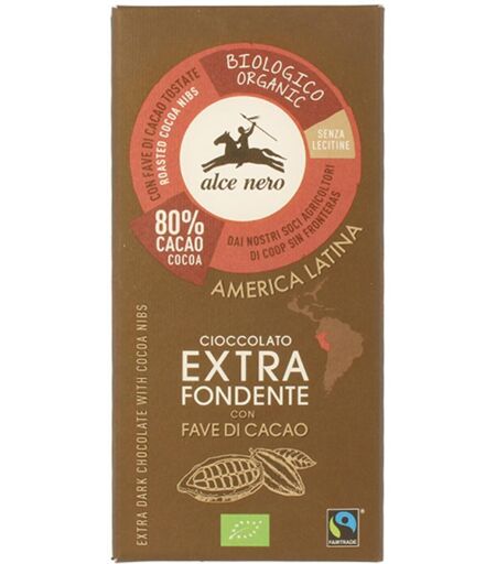 Alce Nero Spa Alce Nero, Cioccolato Extra Fondente 80% con Fave di Cacao Biologico, 100g