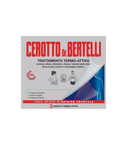 Dr Bertelli Cerotto Termo-Attivo è un prodotto utile per favorire la circolazione, per alleviare il dolore muscolare e avere sollievo. Formato: 3 pezzi ...