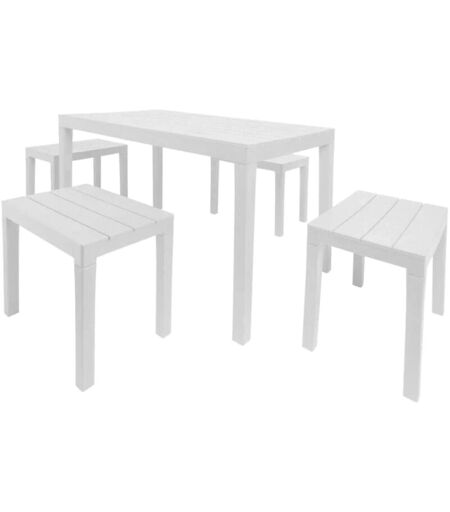 Progarden Set salotto da esterno, Set da giardino con 1 tavolo rettangolare e 4 panchine, Set indoor e outdoor da Pic Nic, 100% Made in Italy, Bianco