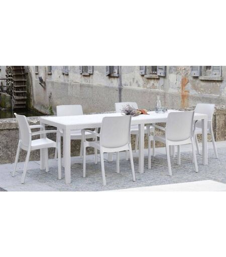 TAVOLO DA ESTERNO - Ripiano rettangolare allungabile da pranzo, Tavolo da giardino estensibile effetto rattan, 100% Made in Italy, 150/220x90h72 cm, Bianco. STRUTTURA E UTILIZZO - Tavolo outdoor con struttura resistente in plastica rinforzata - Dotato di allunga centrale di 70 cm e di 2 gambe aggiuntive che ne garantiscono la stabilità - Prodotto con finitura con effetto rattan, che ne garantisce la comodità e lo stile - Prodotto perfetto per arredare elegantemente il tuo spazio outdoor, terrazzo, giardino, balcone o veranda - Prodotto versatile che può essere abbinato a vari tipi di sedie, utilizzabile anche all'interno - Articolo di design salvaspazio ideale per ospitare fino a 10 persone per pranzo. MADE IN ITALY - L'articolo è prodotto in Italia, con l'impiego dei migliori materiali e la massima qualità e cura nei dettagli - L'accortezza dei processi produttivi è sinonimo di affidabilità, resistenza e raffinatezza - La Certificazione Made in Italy è garanzia di piena conformità ...