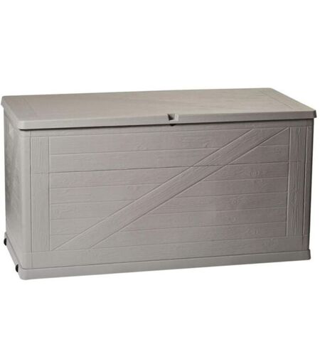 Bauli multiuso Wood tortora Struttura in resina inalterabile, resistente al gelo e alle intemperie ed ai raggi UV, maniglie per un comodo trasporto, lucchettabile, facile montaggio ad incastro. Decorazione simil-legno. Dimensioni L120xP57xH63 cm. - Lt. 420. Colore tortora ...