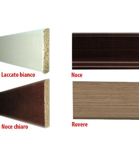 Battiscopa in legno Dimensioni 70x8 mm. - aste 2,4 mt. ca. confezionate in fasci da 10 aste Con piedino - Finitura Laccato bianco ...
