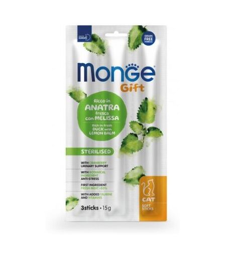 Monge Cat Gift Sticks Sterilised Anatra Fresca e Melissa e Mirtilli Rossi