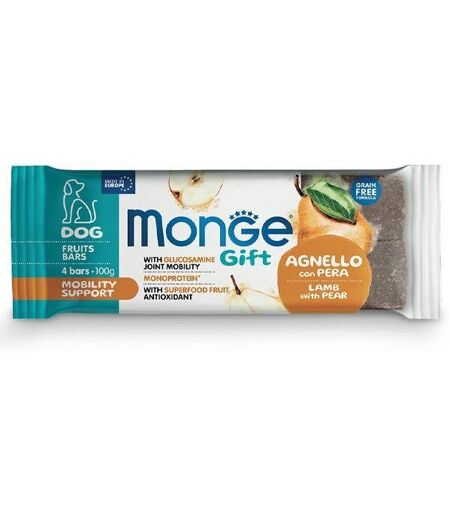 Benessere Del Tuo Cane MONGE GIFT MOBILITY SUPPORT DOG AGNELLO CON PERA è un alimento complementare per cani adulti. Specificatamente sviluppato per il benessere del tuo cane grazie all’inclusione di L-carnitina per il mantenimento della massa magra. Prodotto formulato senza cereali e con un’unica fonte proteica animale*, l’agnello, preziosa fonte di proteine ad elevata digeribilità e valore biologico. La formulazione è arricchita con vitamine per la vitalità quotidiana e con glucosamina fonte di nutrienti per le cartilagini articolari. L’inclusione di frutta superfood, come la pera fonte di antiossidanti per favorire la motilità, è frutto della ricerca Made in Italy per supportare la qualità di vita dei nostri cani. Senza coloranti artificiali e zuccheri aggiunti. *Può contenere tracce di altre fonti proteiche. La confezione è di 100Gr. e Contenente 4 sticks Grain Free Senza coloranti e conservanti Composizione Agnello disidratato (40%), patate, glicerina, amido di patate, pera ...