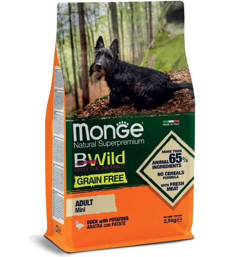MONGE CANE BWILD GRAIN FREE ADULTO MINI ANATRA & PATATE 2,5 KG ...