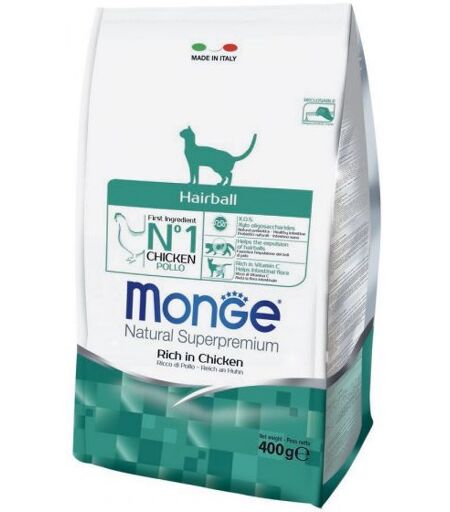 MONGE GATTO NATURAL SUPERPREMIUM HAIRBALL ADULTO POLLO 400 GR ...