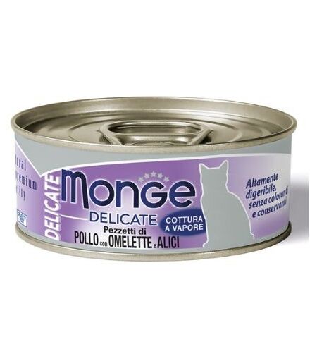 Monge Cat Delicate Pezzetti di Pollo con Omelette e Acciughine Lattina 80gr
