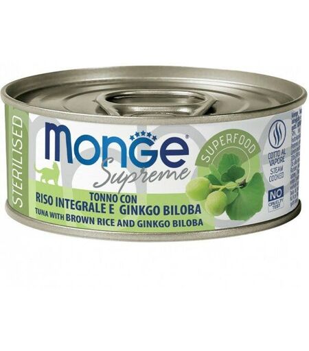Monge - Supreme Sterilised Adult Cat Tonno Riso Integrale e Ginkgo Biloba MONGE SUPREME GATTO STERILIZZATO TONNO CON RISO INTEGRALE E GINKGO BILOBA è un alimento bilanciato per gatti adulti sterilizzati. Formulato appositamente per favorire il mantenimento del peso corporeo ideale del tuo gatto grazie alla presenza di riso integrale, Superfood e fonte di fibre vegetali per regolarizzare il transito intestinale. Il primo ingrediente è il Tonno dell’oceano e la formulazione è arricchita con Frutto-oligosaccaridi (FOS), prebiotici che supportano il sistema immunitario. Con l’inclusione di ingredienti ricercati come il ginkgo biloba, Superfood energizzante particolarmente ricco di vitamine per supportare la vitalità quotidiana dei nostri gatti. COMPOSIZIONE Tonnetto striato (Katsuwonus pelamis) 50%, riso integrale 4%, ginkgo biloba 4%, tapioca, Fruttoligosaccaridi (F.O.S.) 0,04%. COMPONENTI ANALITICI: Proteina grezza: 16%, Fibra grezza: 0,1%, Grassi grezzi: 1%, Ceneri grezze: ...