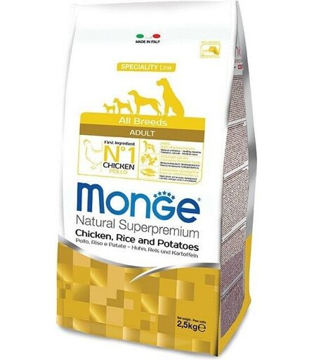Monge Natural Superpremium Speciality Line All Breeds Adult sono deliziose crocchette con Pollo, Riso e Patate sono un alimento completo e bilanciato per cani adulti di tutte le razze che necessitano di alimenti ad alta digeribilità. Garantiscono il benessere del cane grazie alla presenza di elementi nutritivi di altissima qualità, frutto della ricerca Made in Italy. È un prodotto altamente appetibile con la garanzia della monoproteina: un solo tipo di carne per ogni ricetta. Il primo ingrediente è il pollo e sono arricchite con xilo oligossacaridi (X.O.S.), prebiotici naturali che favoriscono la salute dell’intestino. Contengono estratto di carciofo, echinacea, origano e aglio che stimolano le difese immunitarie e proteggono il fegato. Condroitina, glucosamina, calcio e fosforo aiutano il corretto sviluppo delle ossa e delle articolazioni del cane. ...