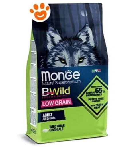 Monge Bwild Low Grain All Breeds Cane Adult Cinghiale è un alimento completo e bilanciato per cani adulti. L’elevato tenore di proteine presenti nella carne di cinghiale garantisce una dieta bilanciata, assecondando il naturale istinto dei vostri animali. Formulato con ridotto apporto di cereali*, senza l’utilizzo di patate. Con semi di lino, fonte di acidi grassi omega-3, per la morbidezza e la lucentezza del pelo. Il gusto delizioso è anche favorito dalla presenza di frutta (come mirtilli neri, mirtilli rossi e lamponi) e ortaggi (carote), fonti naturali di fibre e minerali. La formulazione è arricchita con XOS (Xilo-oligosaccaridi), prebiotici di ultima generazione che supportano il benessere intestinale. La ricettazione specifica contribuisce al mantenimento del benessere dell’animale e il rispetto del suo istinto naturale. Senza coloranti e conservati artificiali. ...